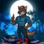 a woman with a shaved head and a red jacket