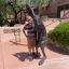 ALT: a man in a cowboy hat is playing with a hula hoop on a dirt road .