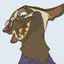 a cartoon cat with a mustache is standing on its hind legs and looking at the camera .
